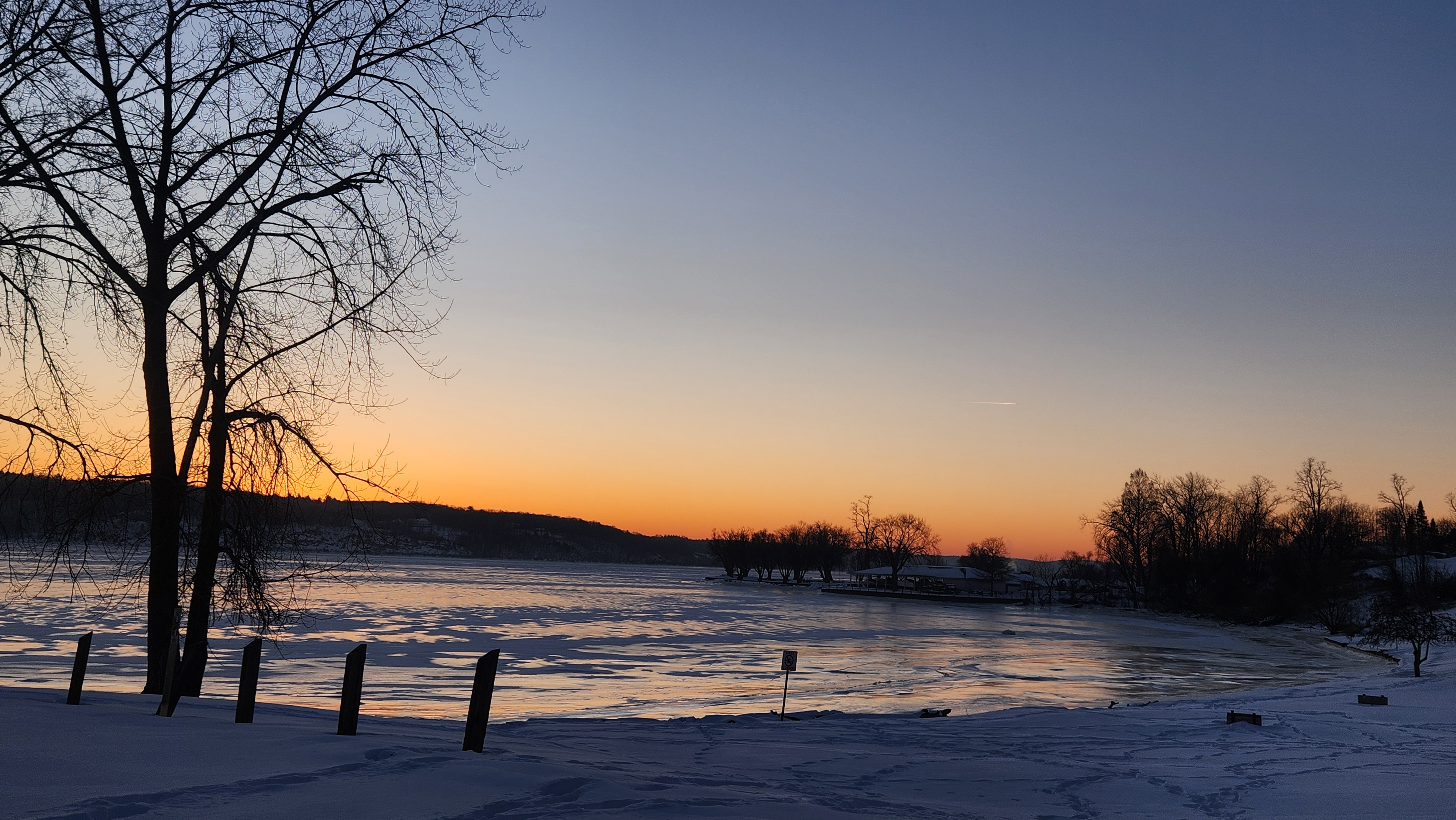 Sunrise over George Freer Park 6°F. Waves frozen in place.