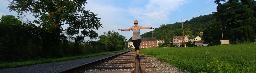When I can’t row (because of periformis pain or other pain), I go for long walks along the Rondout waterfront. And practicing balance is a productive way of using the time to improve my rowing. Balance is what it is all about. Today I only managed to go 239 steps on the trolley tracks on which I practice balancing. I had hoped for 300+ and was very surprised and disappointed. So I thought about what I would need to do to improve. When you do this you should make sure you put on some insect repellent so the bugs don’t spoil it for you. And the shoes you wear should be lighter and more like bare feet. I wore Nike sneakers and it made for difficult stepping at times. Mostly you need to focus. Set your gaze at a point ahead and focus continually as you balance. You will fail if your mind wanders. Count your steps out loud to keep focus. Notice how you walk and keep your head straight, your back upright. Pace is VERY important. Go too fast and you will most assuredly fail. You need to be patient and go slow while you gain skills needed to stay in balance.