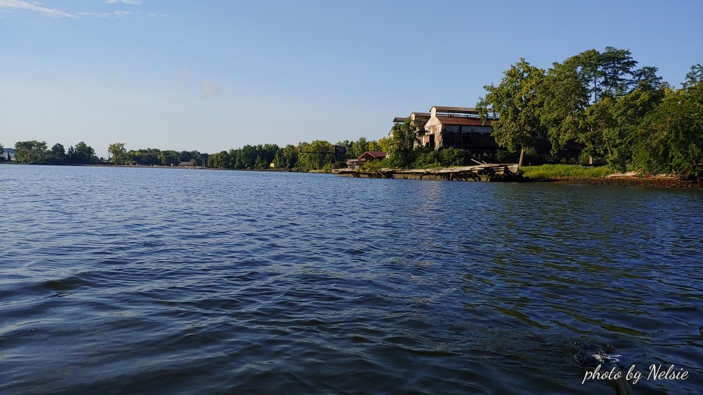 As you can see the map shows a 7 mile plus row up the Hudson. I note the moon is high in the West. I hear a sound behind me and when I turn around I see a tugboat pushing a barge south inside the channel. https://www.youtube.com/watch?v=5Q9ft667sxo .I love the sound it makes as it passes by. I continue north along the shoreline which will soon be well known as Quarry Waters (see https://quarrywatersparkinfo.org/). It is very quiet and beautiful. I stop and pull my boat in for a break and take note of the very clear water (I can see my feet!). On the way back I run into some SUPers who launched from Rhinecliff. They picked a splendid day to paddle the river! As I go back up the creek I see what looks like an eagle on the leafless, scraggly tree on the north bank of the creek. I am henceforth call it “Eagles Perch Tree”.
