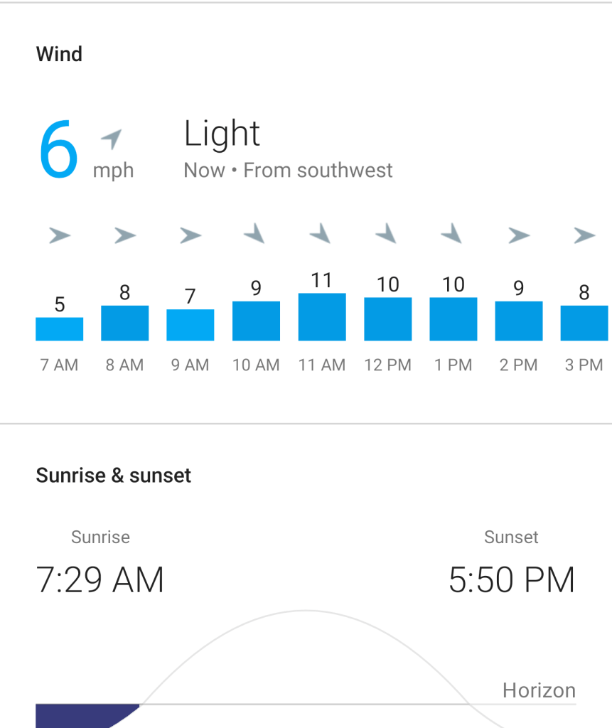Look at the wind snapshot below. It is blowing southwest to north east at 6 mph.